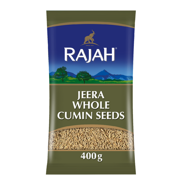 Rajah Jeera Whole Cumin Seeds 400g is a pack of whole cumin seeds, known for their warm, earthy flavor and aromatic qualities. Ideal for roasting or adding directly to dishes, these cumin seeds are perfect for curries, stews, rice dishes, and spice blends. The 400g pack provides ample supply for frequent cooking and enhances the flavor of your meals with its distinctive taste.